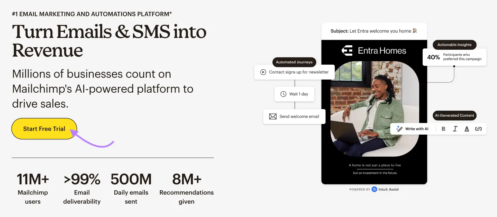 Ví dụ, Mailchimp có một trong những kết quả hàng đầu cho cụm từ “nền tảng Marketing qua email”.
