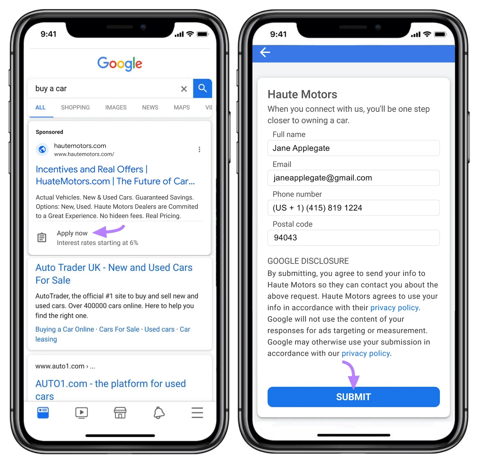 Trên Google Ads, bạn có thể sử dụng nội dung biểu mẫu khách hàng tiềm năng để thêm biểu ngữ CTA vào quảng cáo của mình.