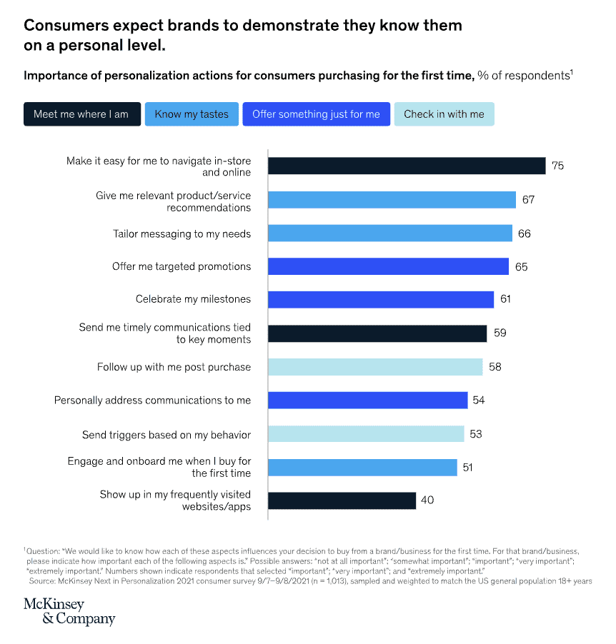 Sở thích cá nhân hóa của người đăng ký dựa trên khảo sát do McKinsey thực hiện .