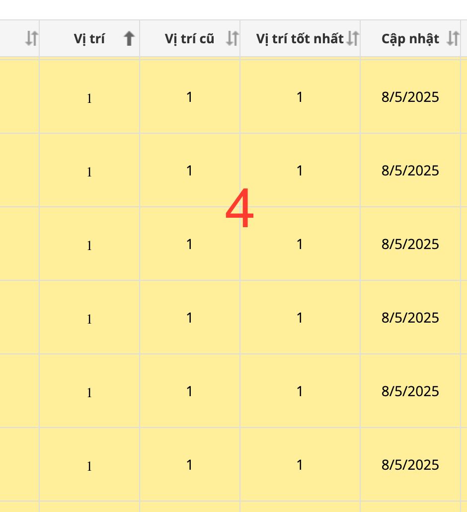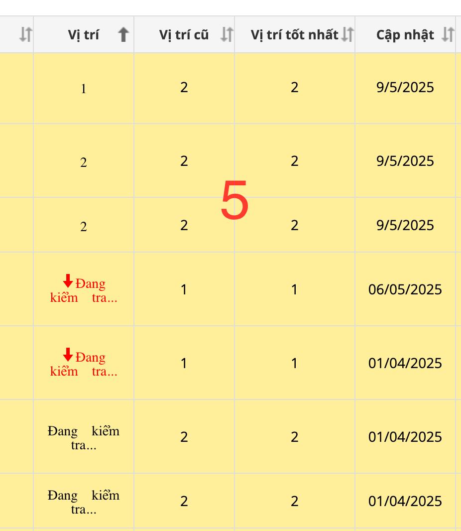 Hình 5: Thi thoảng có check 1 số từ khóa mà bên mình viết content đứng TOP của 2-3 tháng trước, thì nó vẫn TOP ở đó mà không bị thay thế bởi bên nào.