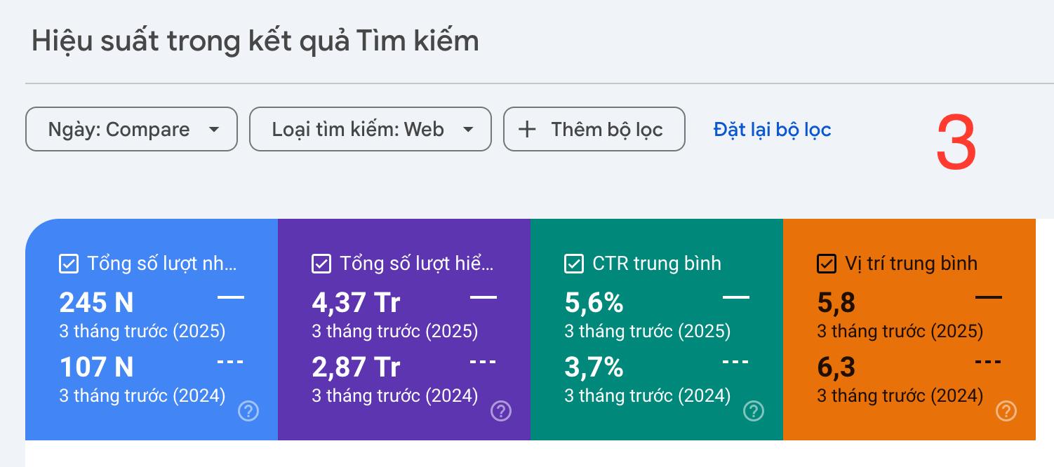 Nhìn vào số lượt hiển thị và vị trí trung bình thì bạn hiểu là: hầu như viết xong content là TOP và là TOP cao (mình sẽ có bài phân tích 4 chỉ số GSC này sau)