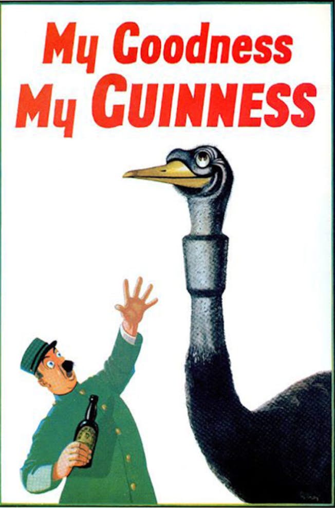 Quảng cáo Guinness đầu tiên ra mắt vào năm 1929 với khẩu hiệu “Guinness Is Good For You” trên tờ Daily Chronicle ở Anh. Tiếp theo là các quảng cáo và áp phích do nghệ sĩ John Gilroy thiết kế có hình ảnh một người trông coi sở thú và những con vật tinh nghịch kéo dài trong nhiều năm, và bản gốc hiện là đồ sưu tầm.