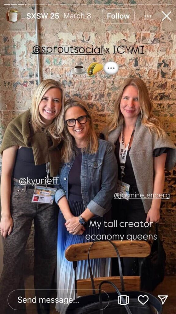 Những người có sức ảnh hưởng cũng tham gia vào các sự kiện của ngành công nghiệp đình đám, đóng góp vào cuộc trò chuyện và chia sẻ chuyên môn của họ. Chuyên gia Marketing Lia Haberman đã tham dự SXSW, tổ chức sự kiện ăn sáng với chúng tôi và chia sẻ những thông tin quan trọng trong thời gian cô tham dự sự kiện.