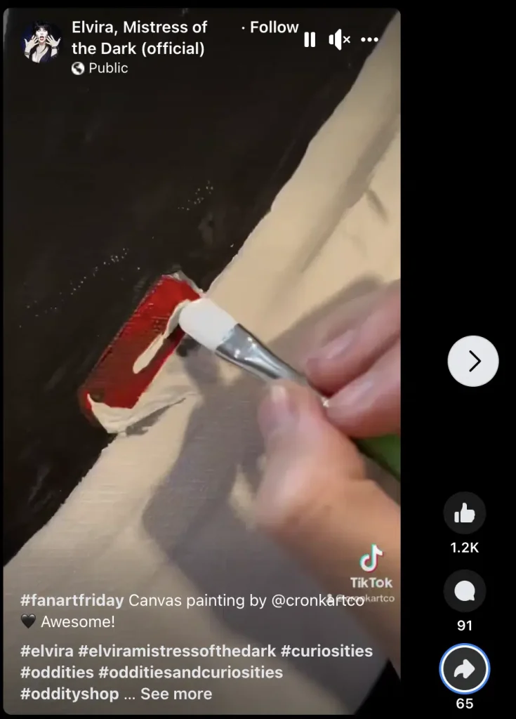 Tài khoản chính thức của Elvira đã chia sẻ bức tranh người hâm mộ này. Đây là chiến thắng cho người hâm mộ cuồng nhiệt và là chiến thắng cho người quản lý phương tiện truyền thông xã hội muốn thêm một số nội dung chất lượng vào lịch trình.