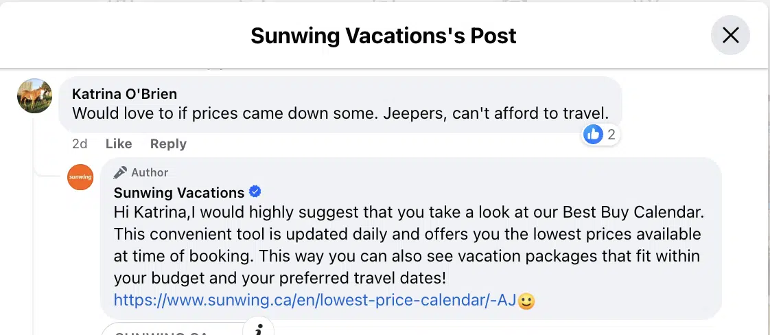 Nguồn: Sunwing Vacations trên Facebook